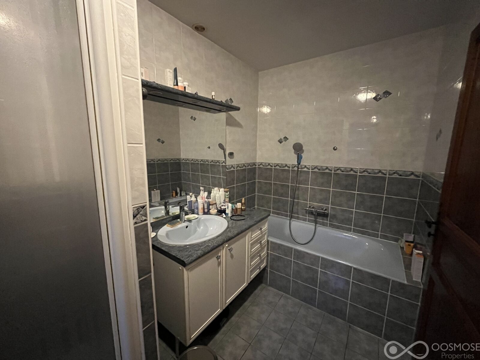 - salle de bain avec douche et baignoir et WC